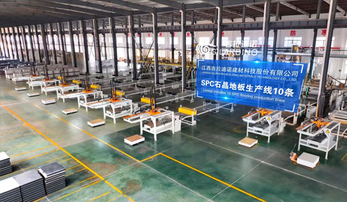 江西吉拉迪諾建材科技股份有限公司,占地面積近300畝,建筑面積13萬多平方米,總投資5億元,擁有20余條生產線,員工近300人?,F有SPC石晶地板生產線十條、德國豪邁開槽線兩條、大型商用卷材生產線四條、水墨彩印生產線兩條、同透地板生產線兩條,超大型運動地板生產線一條、是彈性地板行業產能量大,硬件實力強的生產廠商之一。